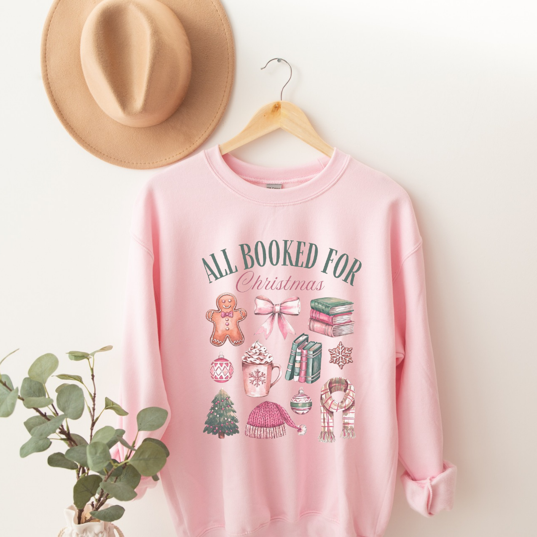Get ready for the holidays with our All Booked for Christmas Sweater! This fun crewneck is perfect for book lovers and Christmas. Show off your love for reading and get into the festive spirit with this unique sweater.