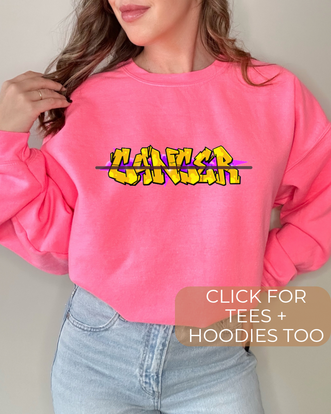Cancer has touched many of our lives. In collaboration with A to Z Blinds, and Mortgages by Kate we have carefully designed a little something to show our support for cancer (see full write up below on our partnership). Whether you, a family member or a friend have been affected, you know the impact it can have. No one should have to fight alone. Let’s all raise awareness by purchasing a cancer sweater or tee