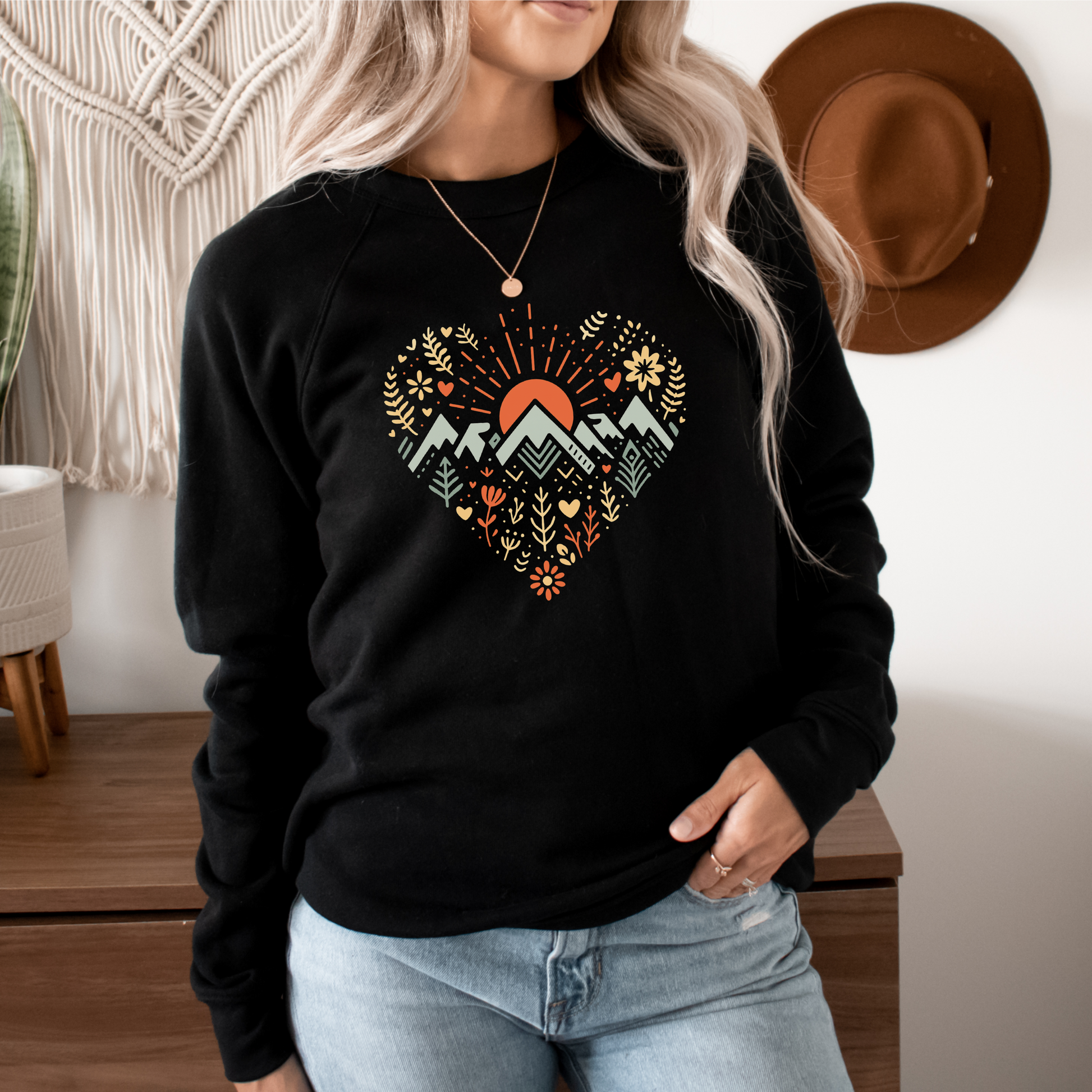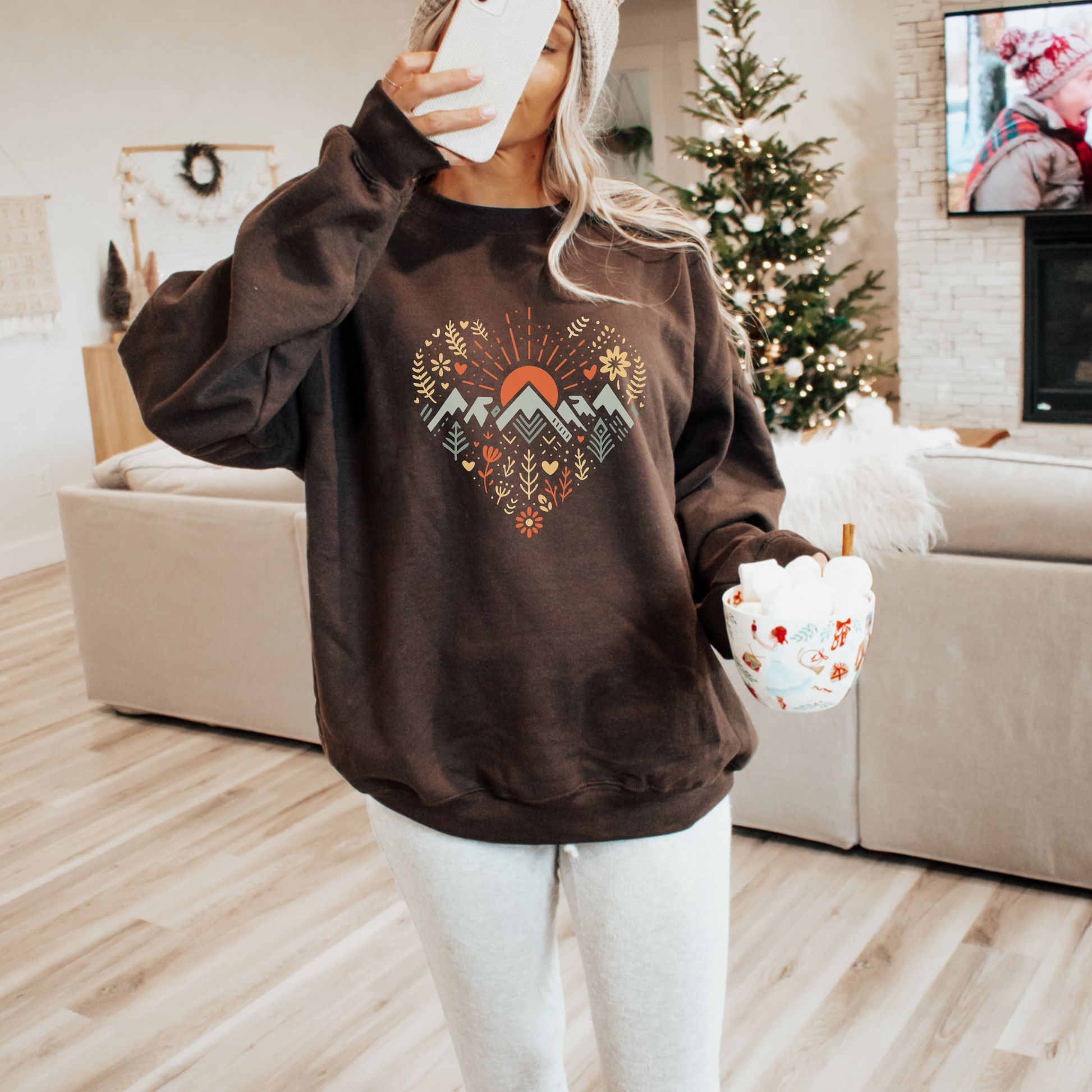 This stunning sweater captures those golden-hour vibes that make you never want to leave the mountains. Perfect for cozy evenings by the fire, casual hikes, or just daydreaming about your next adventure.